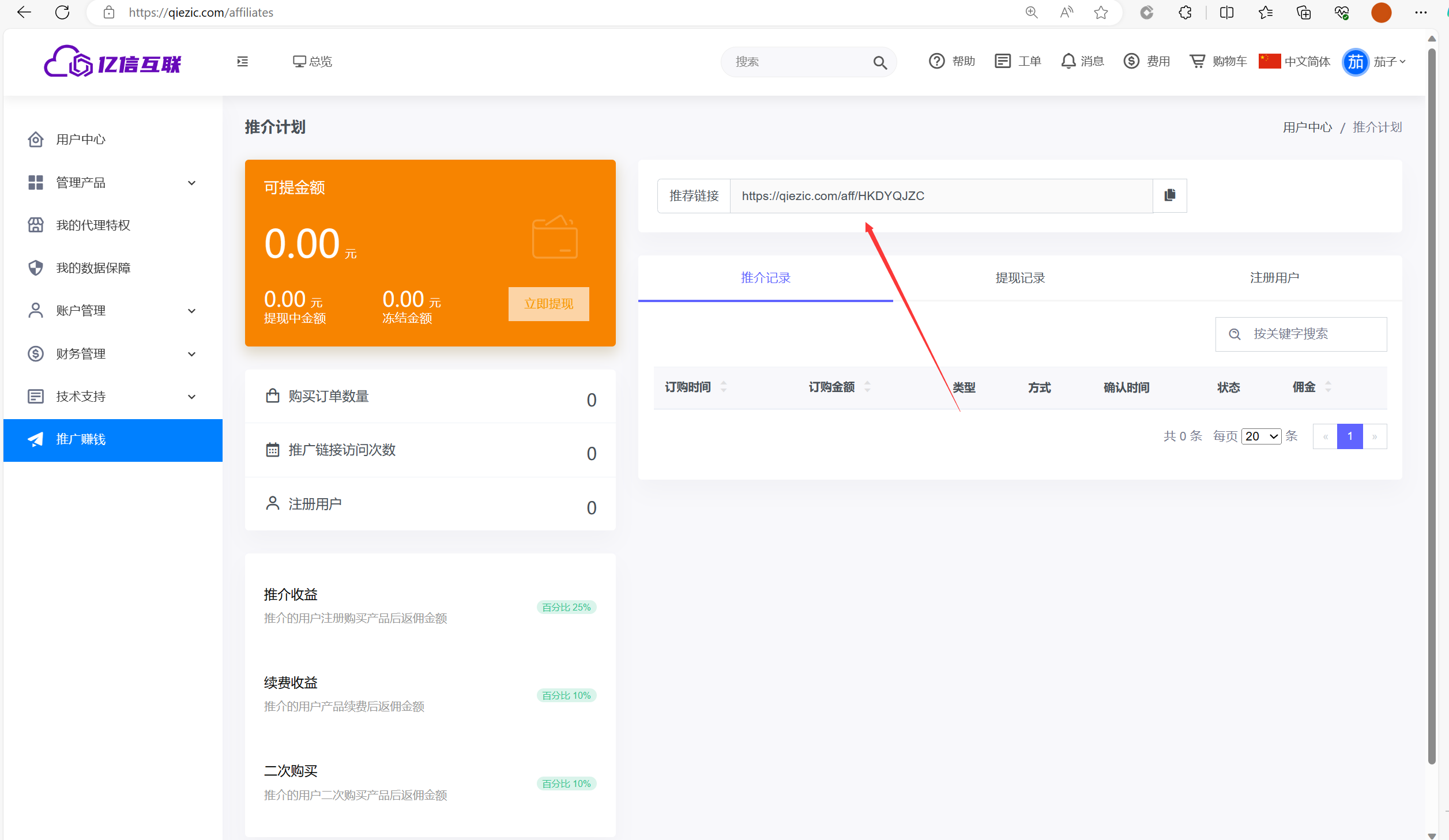首先,我们需要在官网有自己的账号,并且完成实名 官网地址点击进入 然后 我们打开控制台 点击推广赚钱 推广的佣金比例规则: 首单有人购买 反服务器的25% 后……